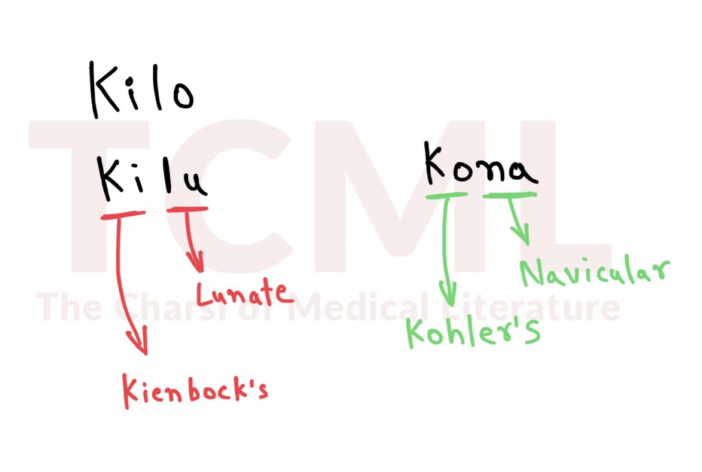 Disease Avascular necrosis of Panner’s disease Capitulum Preiser’s diease Scaphoid Kienbock’s disease Lunate Perthes disease Head of femur Sever’s disease Calcaneum Kohler’s disease Navicular bone