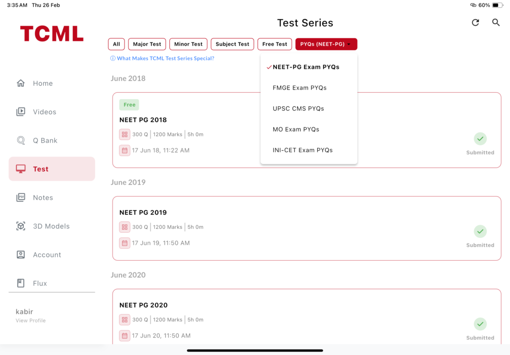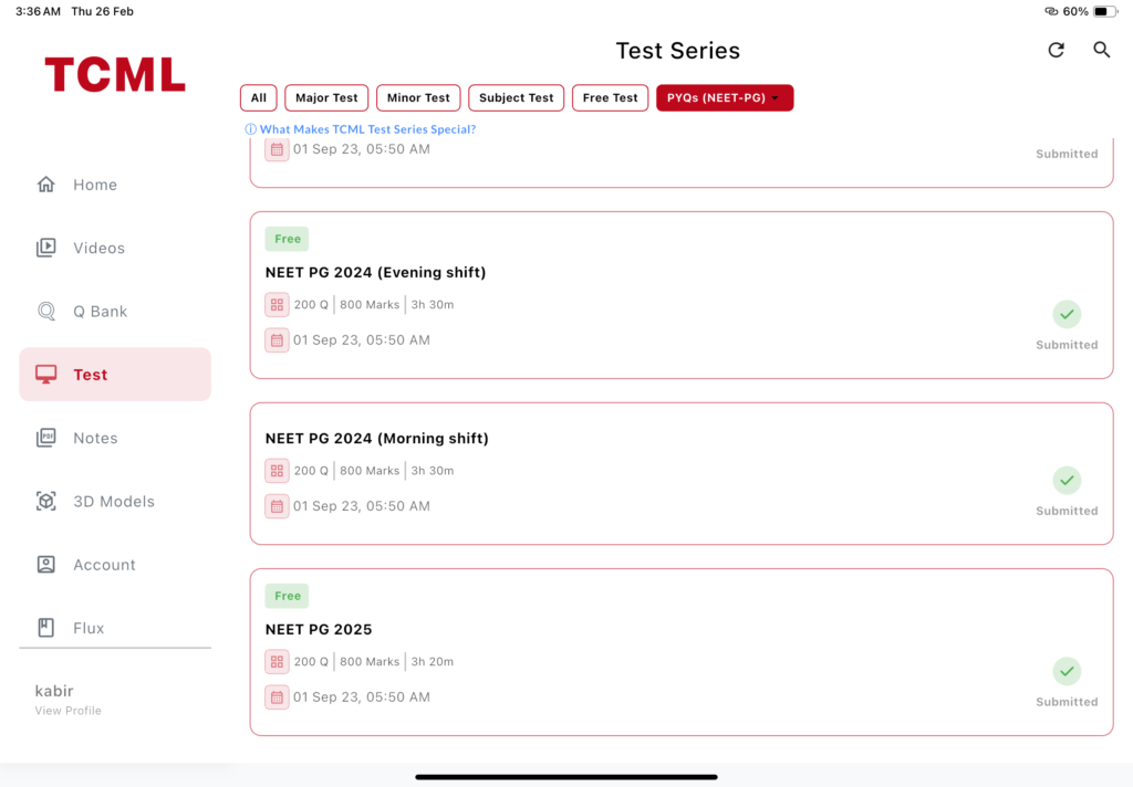 All MBBS students, interns, and repeat aspirants can access it without any cost. Simply download the TCML App, log in, and start practicing.